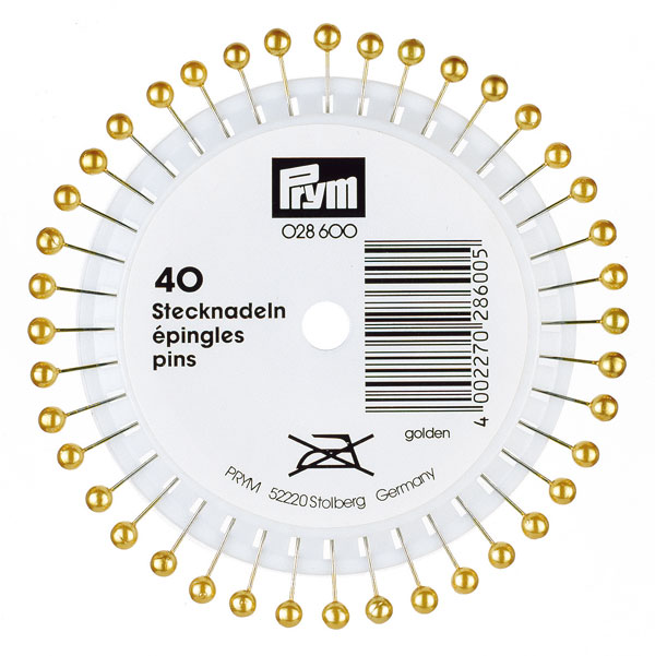 Булавки с жемчужными головками 40*0,58мм, сталь/пластик, серебристый/золотистый, 40шт, Prym, 028600