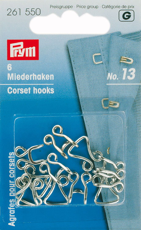 Крючки и петли д/корсетов латунь, нержавеющие№13, большие, серебристый, 6шт в блистере, Прим
