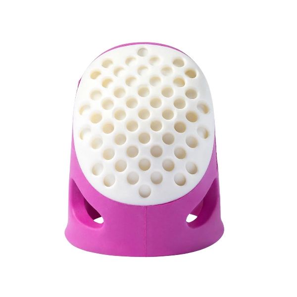Мягкий материал наперстка комфортно охватывает палец "подстраиваясь" под его размер. Благодаря воздухопроницаемым разрезам в наперстке палец в нем практически не потеет. Благодаря структурированному упору с углублениями изделие позволяет удобно подталкивать иглу с любой точки твердого пластика.
