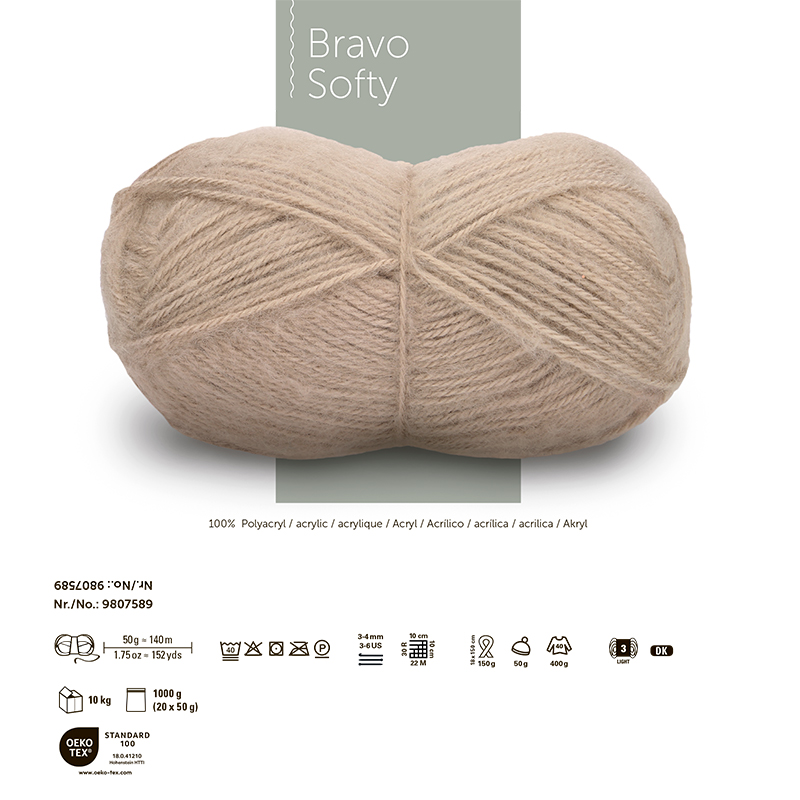 Merino Extrafine 170 — это пряжа от немецкого бренда Schachenmayr, известного своей высококачественной пряжей для вязания и рукоделия. Мягкость и уют — вот что вы почувствуете, взяв в руки Bravo Softy. Эта пушистая пряжа создана для тех, кто ценит комфорт и нежность в каждой детали. Из нее можно вязать верхнюю одежду, аксессуары, интерьерные предметы, мягкие игрушки и амигуруми. С Bravo Softy любой проект становится особенно приятным. Благодаря своей структуре, эту пряжу можно вязать спицами и крючком так же, как и пряжу Bravo. Это позволяет легко комбинировать ее с другими видами пряжи Bravo. В ассортименте Bravo Softy — широкая палитра нейтральных и ярких цветов. Изделия из этой пряжи легко стираются в машинке при температуре 40°C. Они сохраняют свою красоту и качество даже после множества стирок. А доступная цена делает Bravo Softy идеальным выбором для всех. Для изделия размера M вам понадобится 400 грамм пряжи. Рекомендуемые спицы — номер 3-4 мм.