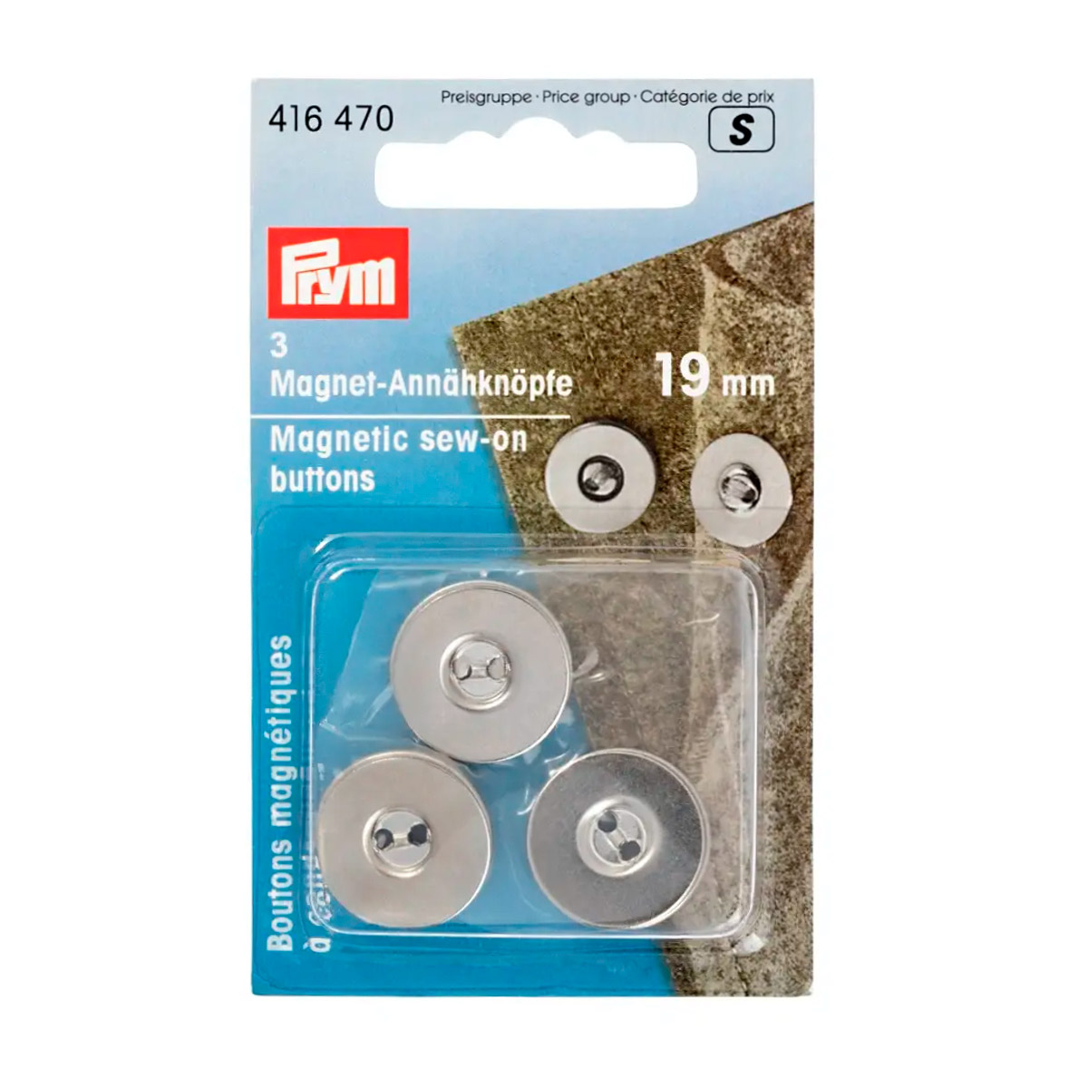 Магнитные пуговицы, д/сумок, одежды, 19мм серебристый, 3шт в блистере, Прим