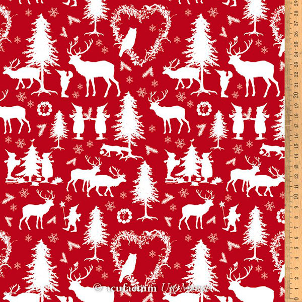 Ткань "Лес гнома. Красный", ширина 145см, 100% хлопок, Acufactum Ute Menze, 3523-838-01
