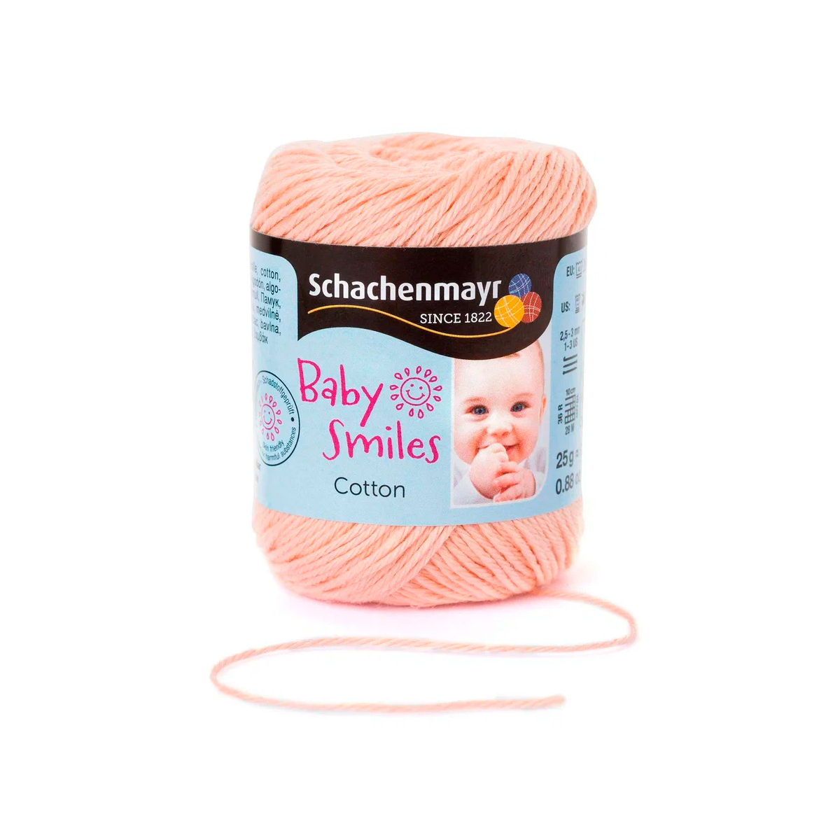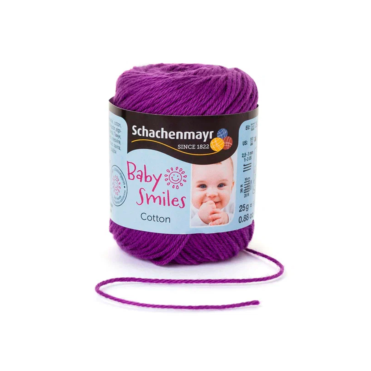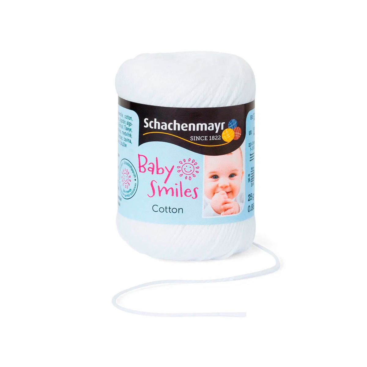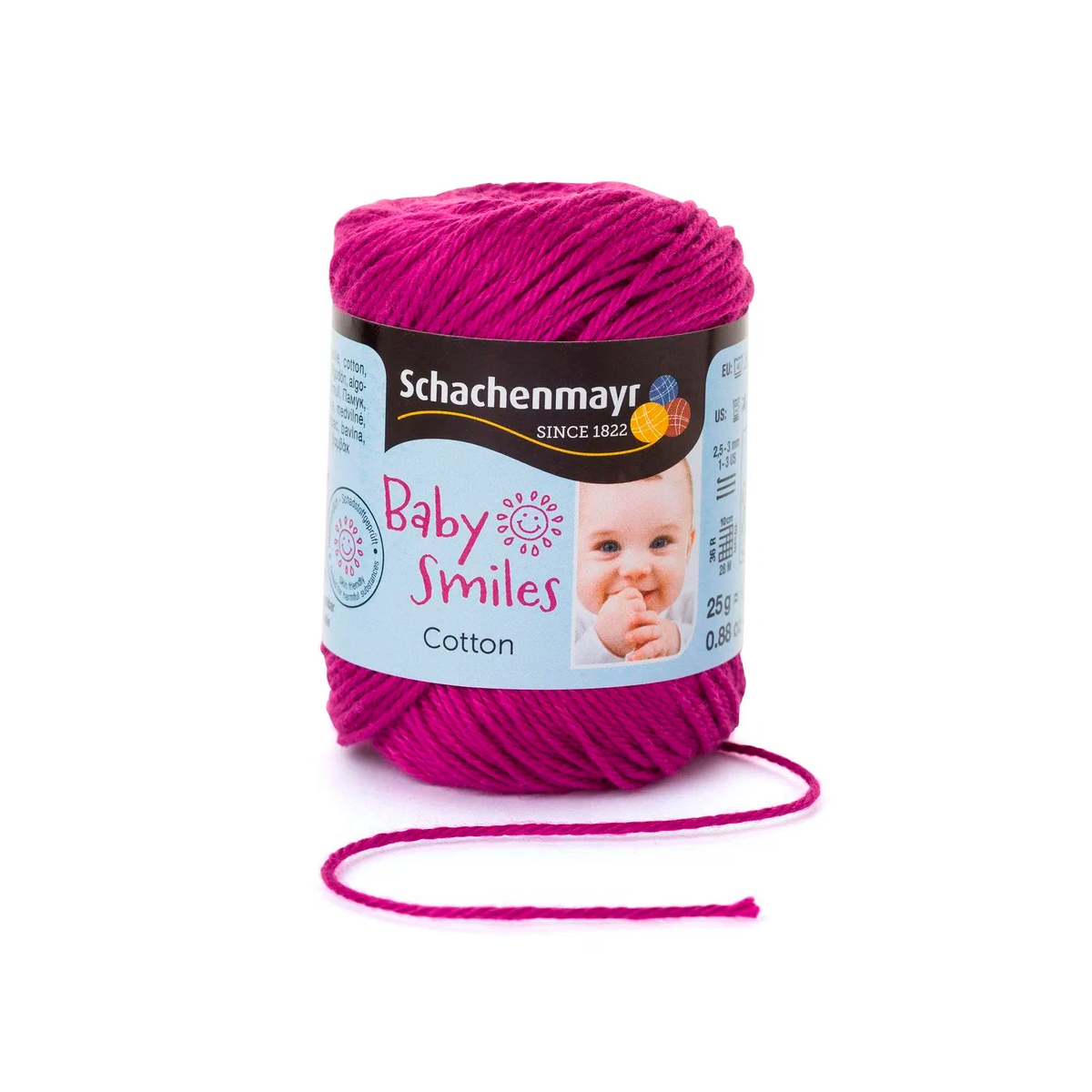 Baby Smiles Cotton (Котон) - высококачественная, легкая в уходе хлопчатобумажная пряжа в красивых ярких цветах. Длинные волокна египетского хлопка делают ее очень прочной, мягкой и приятной на ощупь. Стоимость объясняется использованием натуральных красителей для окрашивания нитей, именно поэтому ребенок может смело брать в рот и вещи и игрушки связанные из этой нити.
