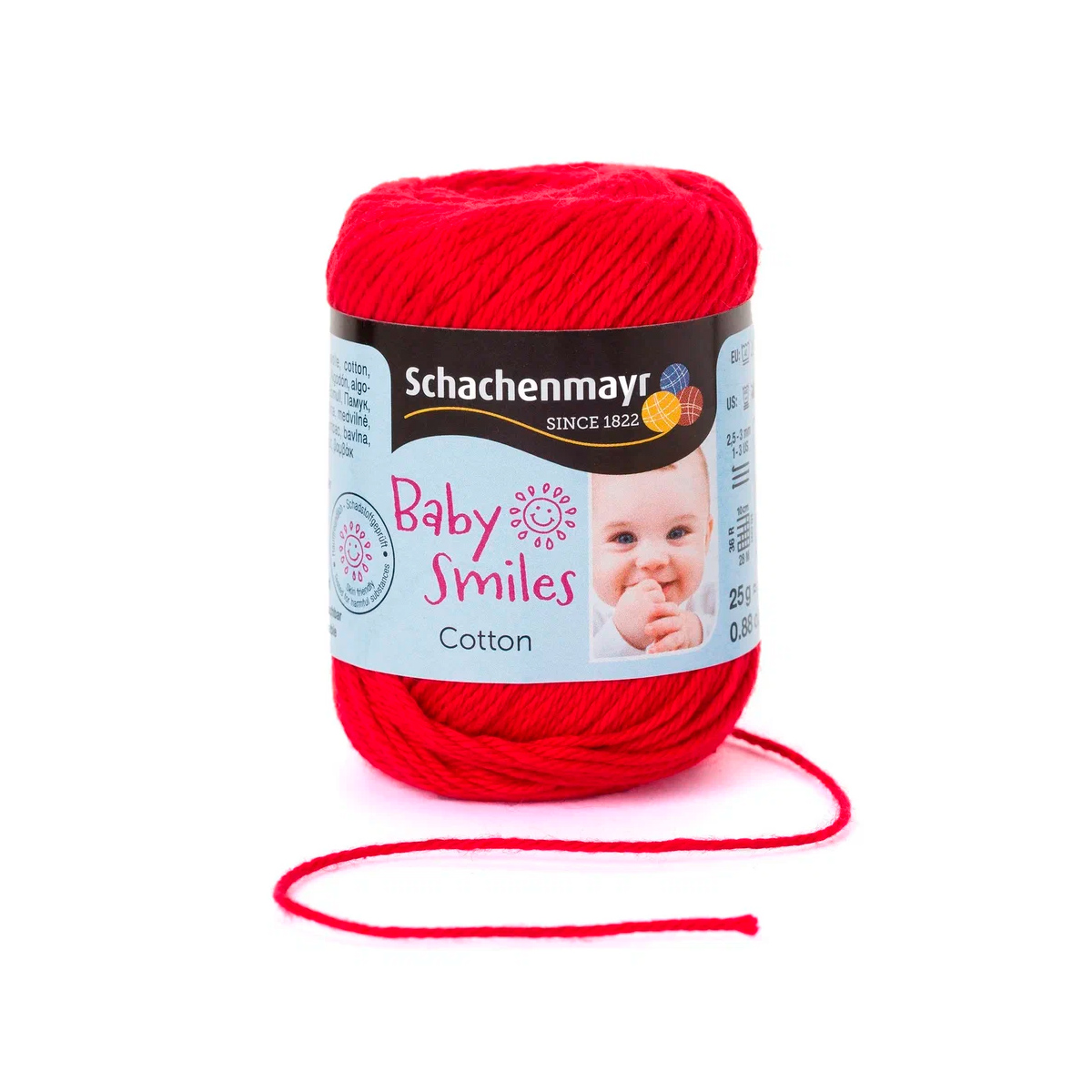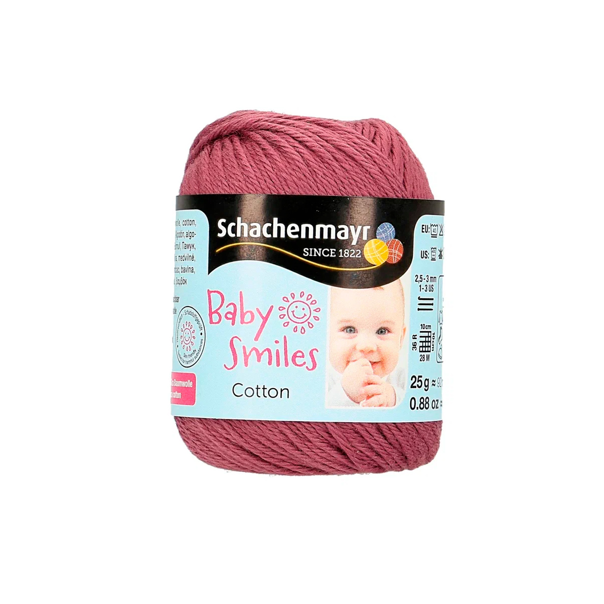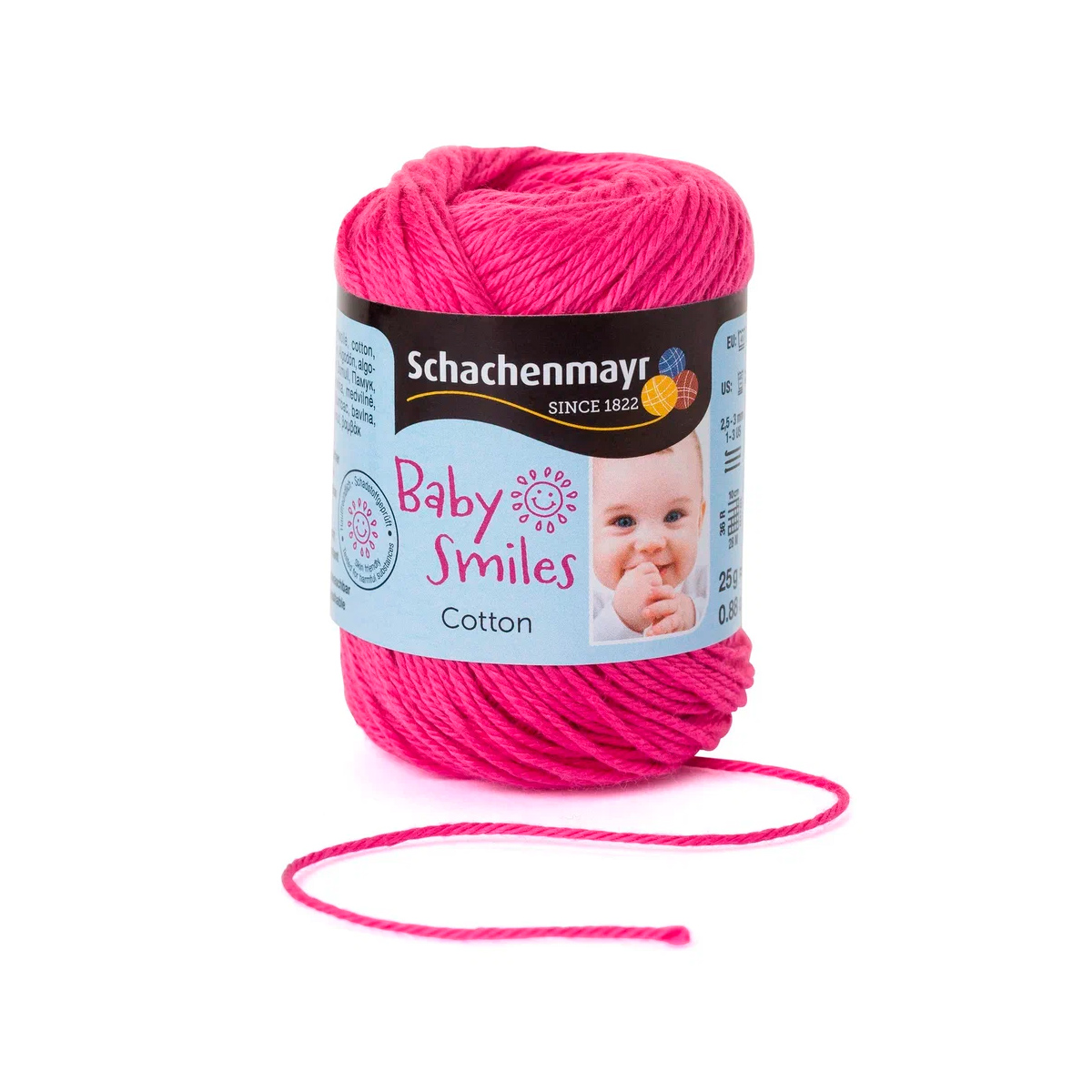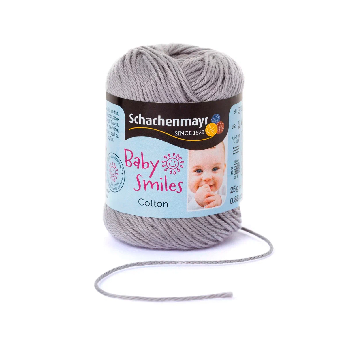 Baby Smiles Cotton (Котон) - высококачественная, легкая в уходе хлопчатобумажная пряжа в красивых ярких цветах. Длинные волокна египетского хлопка делают ее очень прочной, мягкой и приятной на ощупь. Стоимость объясняется использованием натуральных красителей для окрашивания нитей, именно поэтому ребенок может смело брать в рот и вещи и игрушки связанные из этой нити.