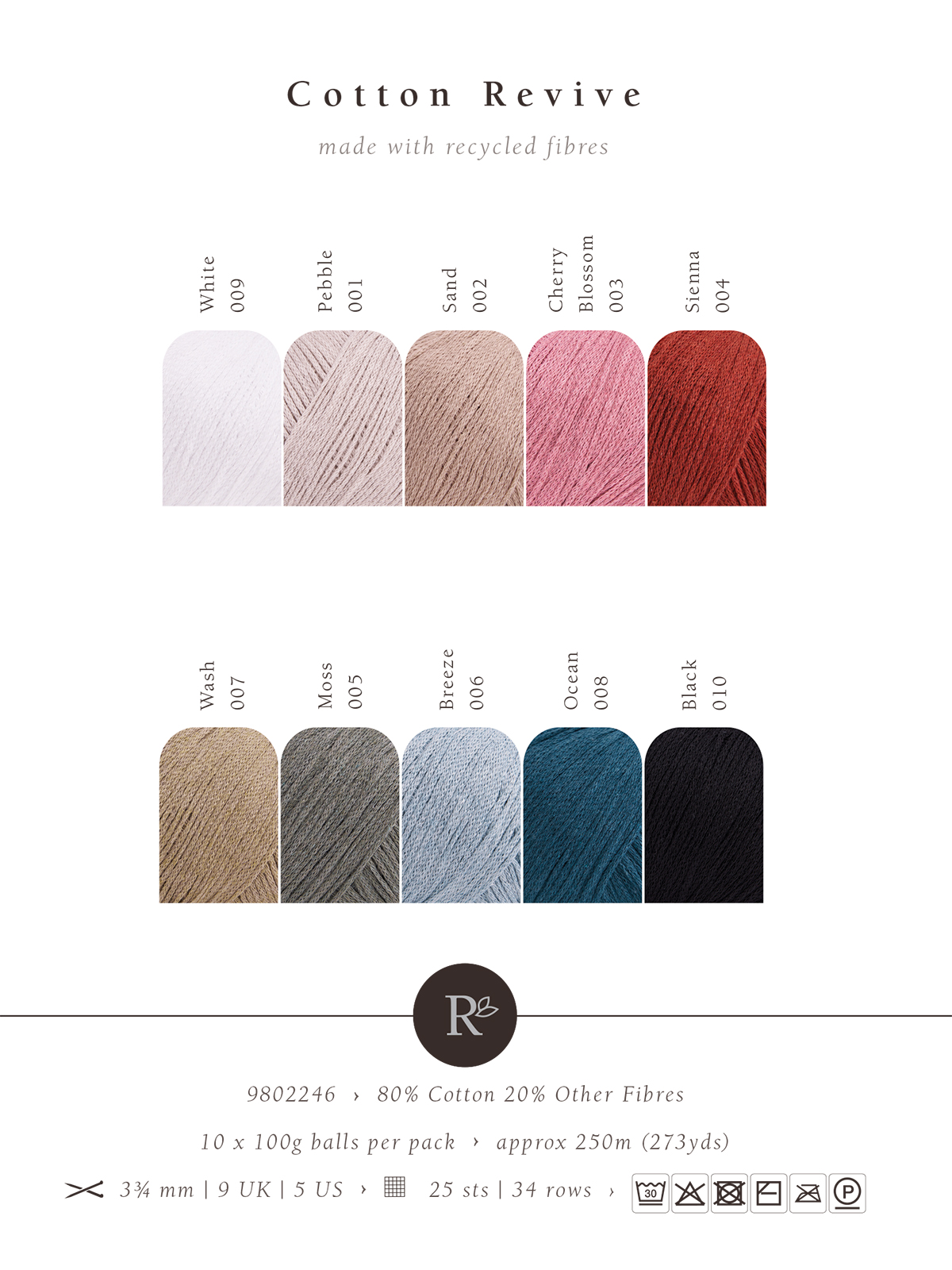 Rowan-британский премиальный бренд пряжи высокого качества с натуральными составами.Cotton Revive-инновационная пряжа из переработанного хлопка. Пряжа состоит на 100% из вторичных волокон, что помогает уменьшить количество текстильных отходов и снизить углеродный след. Cotton Revive отличается высоким качеством,она сохраняет структуру и эластичность.