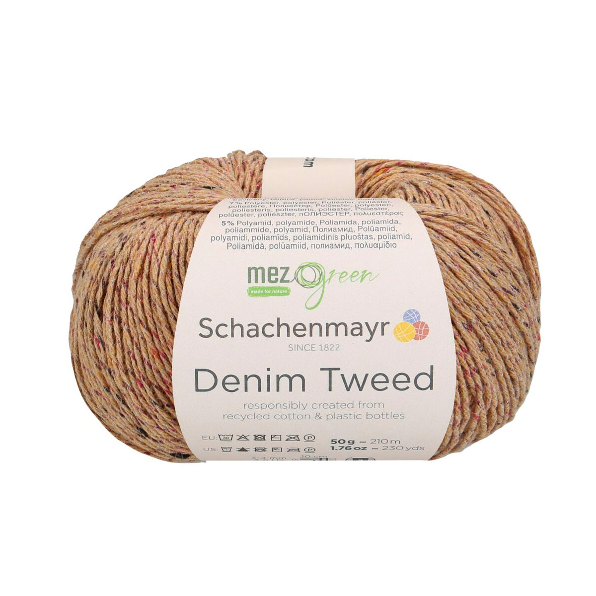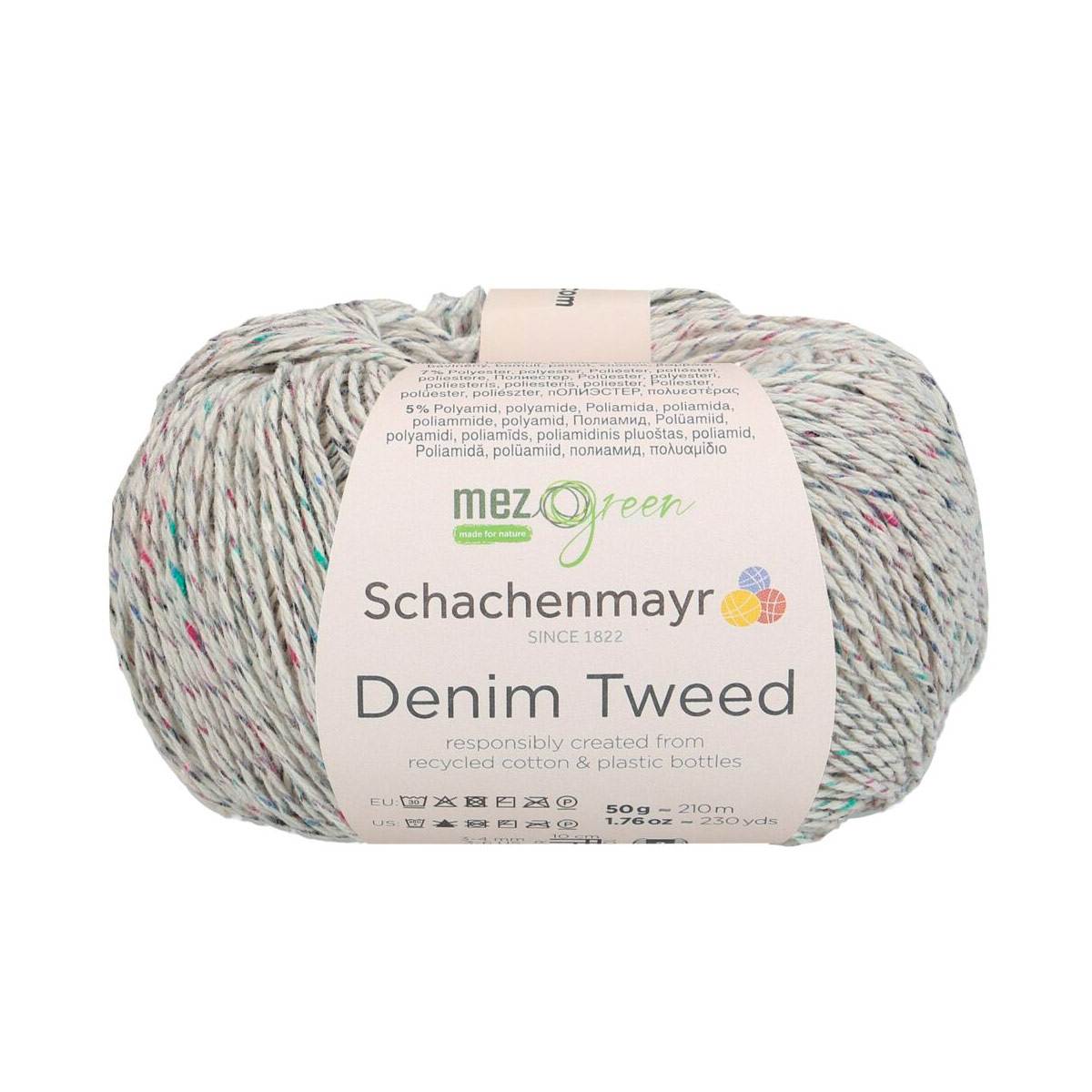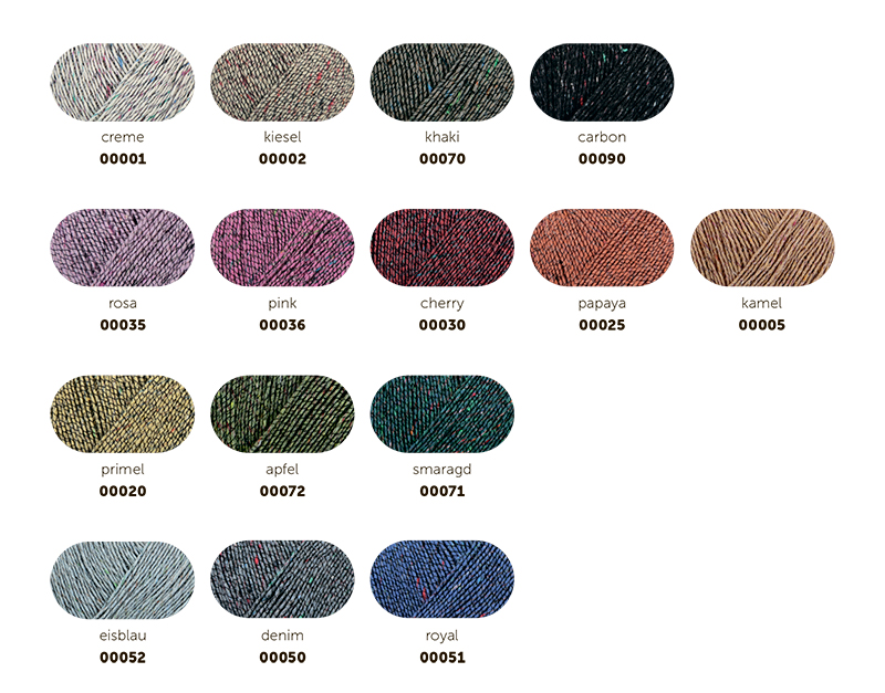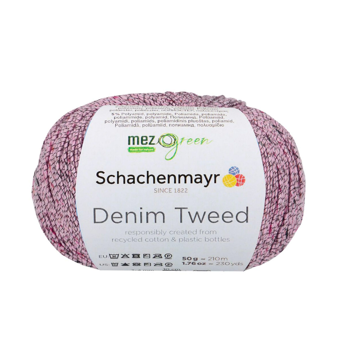 DENIM TWEED — это пряжа от немецкого бренда Schachenmayr, известного своей высококачественной пряжей для вязания и рукоделия. Деним — это идеальный материал для повседневной одежды и создания уникальных вещей. Вязание из него приносит особое удовольствие. Denim Tweed из линейки MEZ Green сделан из переработанных материалов. Хлопок получают из текстильных отходов, а полиэстер — из переработанных ПЭТ-бутылок. В результате получается пряжа с небольшими цветными комочками, напоминающими классический твид. Для прочности и визуального эффекта её скручивают с тонкой полиамидной нитью. Хотя работа с тонкой пряжей требует терпения, результат того стоит. Эти модели станут вашими верными спутниками летом, так как они приятно охлаждают кожу. Denim Tweed не только лёгкий, но и экономичный: для женского свитера размера M нужно всего 400 граммов. Используйте спицы №3–4 мм. Деликатная стирка при 30 С, сшить горизонтально в полутени.