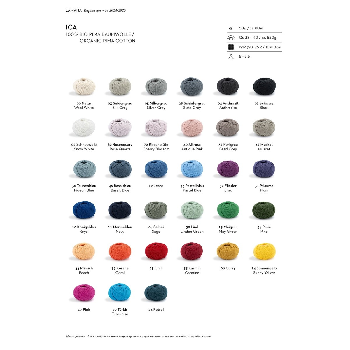 Ica /Ика/ пряжа Lamana, 100% пима хлопок, 10*50г/80м